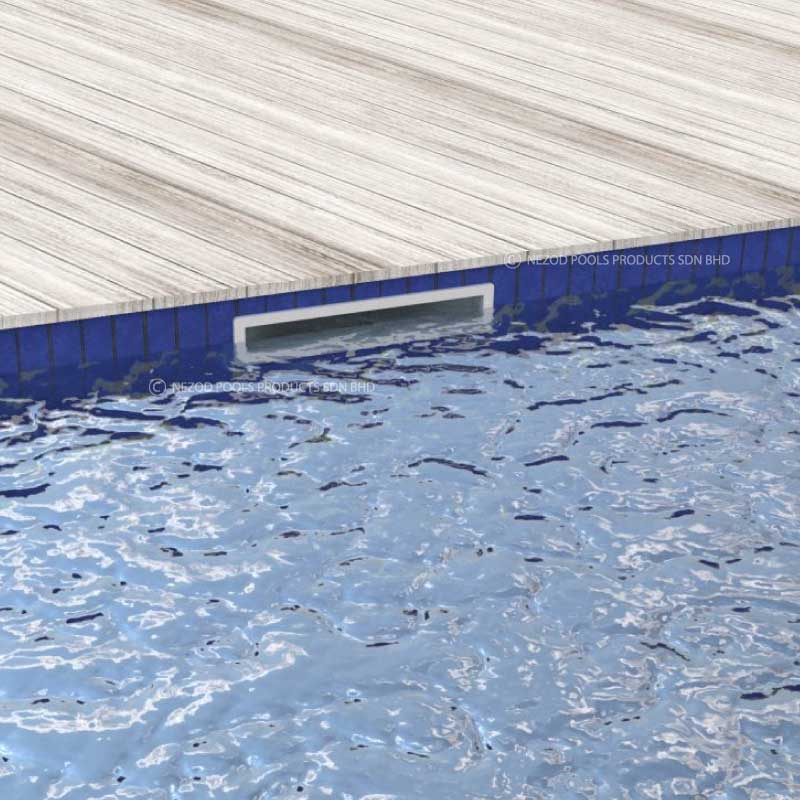 This 600mm wide surface skimmer enables the water line to be close to the pool deck level and creates an elegant finish similar to an overflow pool. A wide skimmer mouth and a large basket maximize water circulation and skimming efficiency.