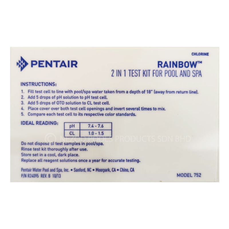 Pentair’s 2-in-1 Test Kit is an easy and accurate way to test your pool water for pH and chlorine level, giving you a clear picture of your pool’s health and peace of mind when swimming. The liquid formula makes testing simple and hassle-free, and cost effective as it is refillable. This test kit will make pool maintenance easier and more accurate, saving you time as well as ensuring a healthier pool environment.