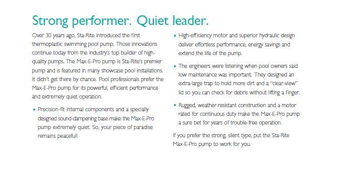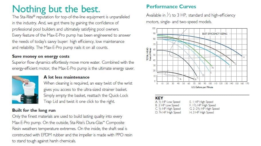 construction using a durable one-piece pump housing constructed of Dura-Glas™ Sta-Rite’s industry leading glass-reinforced